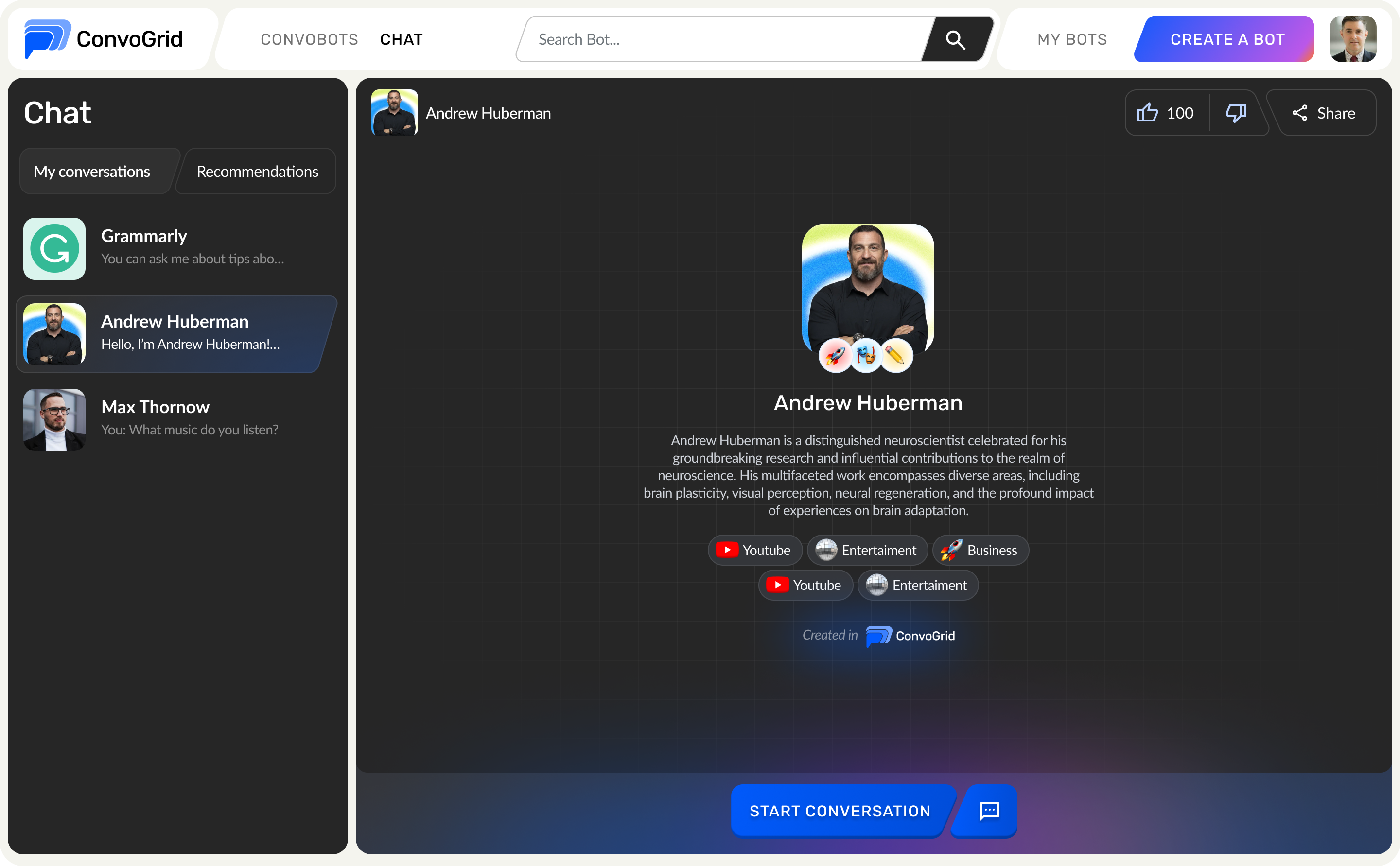 2. Select the option that matches what we are searching for and [start a conversation](https://github.com/convogridai/ConvoDocs/blob/main/starting-a-conversation/finding-convobots/broken-reference/README.md).